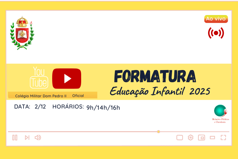 O Corpo de Alunos do Colégio Militar Dom Pedro II convoca todos os novos alunos do 6º ano do Ensino Fundamental II e da 1ª série do Ensino Médio, das unidades Asa Sul e Unidade II Taguatinga/Ceilândia, regidos pelo processo seletivo do EDITAL Nº 01 – 6EF/1EM/CMDPII/DE-2025, para participarem da semana de adaptação, conforme as informações abaixo: