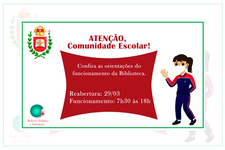 O Colégio Militar Dom Pedro II informa à comunidade escolar o funcionamento da Biblioteca, conforme abaixo: