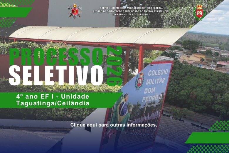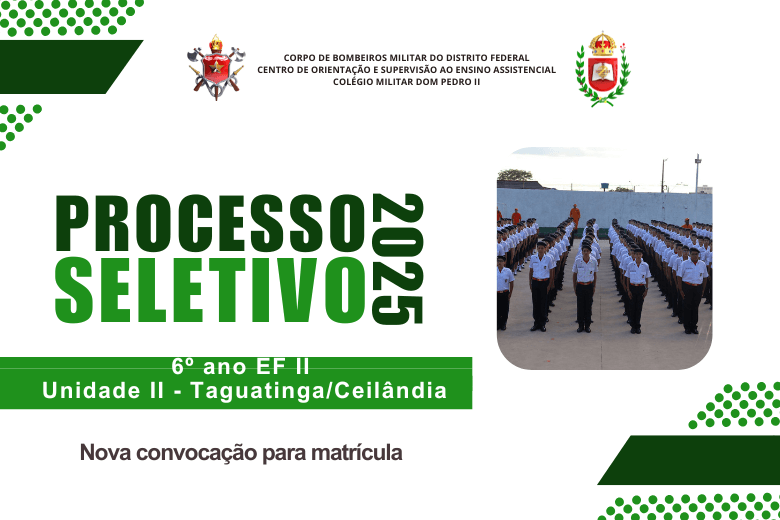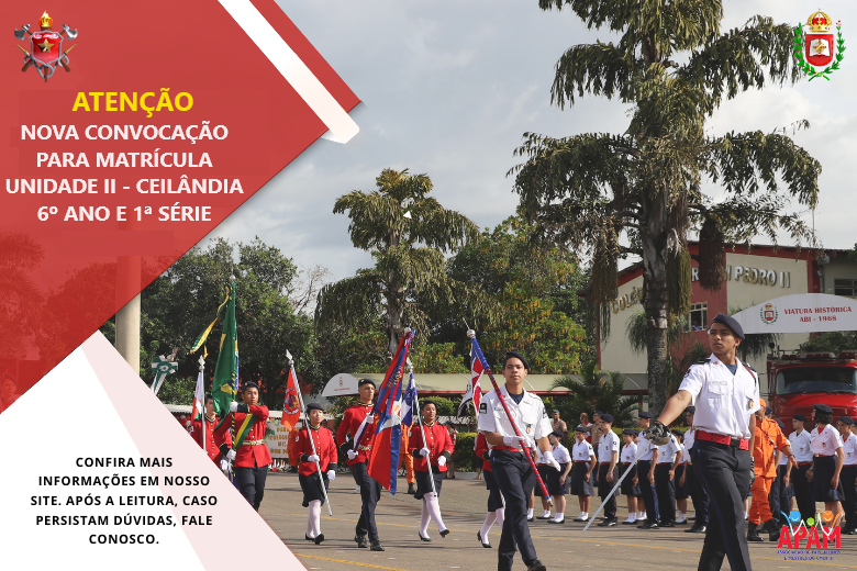 Confira no link abaixo o EDITAL Nº 16 – CMDP II/DE – 2023 – COLÉGIO MILITAR D. PEDRO II relativo a CONVOCAÇÃO PARA MATRÍCULA NA UNIDADE II – TAGUATINGA/CEILÂNDIA – 6º, 7º, 8º,9º anos EF e 1ª série EM .