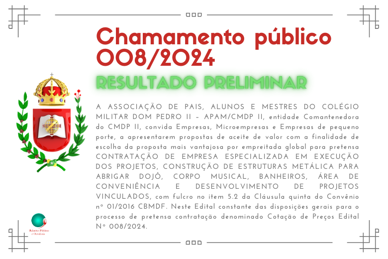 Home Cotações CHAMAMENTO PÚBLICO 008/2024 – RESULTADO PRELIMINAR