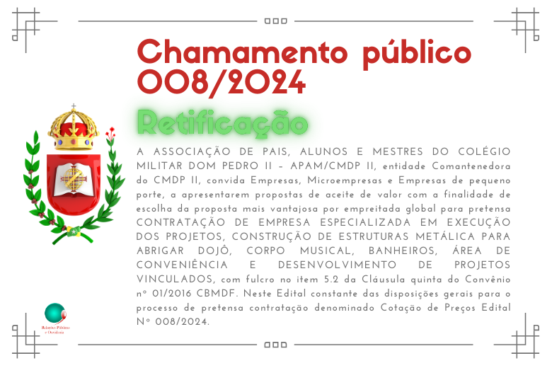 COTAÇÃO DE PREÇOS EDITAL No 008/2024 APAM/CMDPII RETIFICAÇÃO