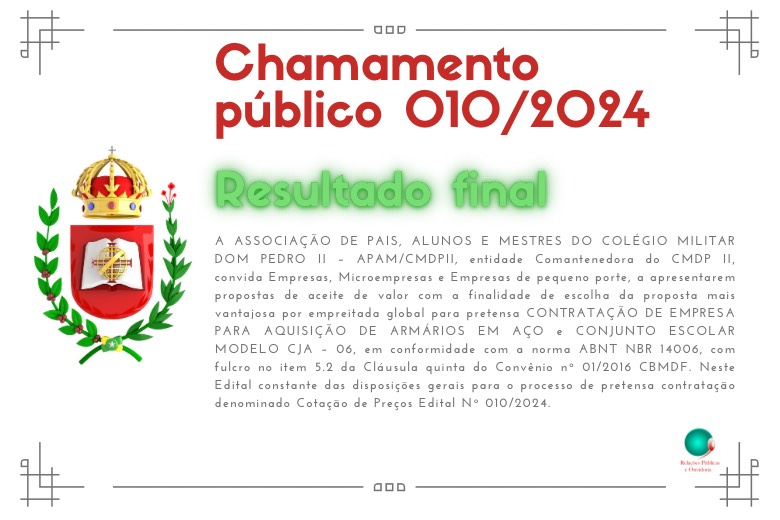 Home Cotações CHAMAMENTO PÚBLICO 010/2024 – RESULTADO FINAL