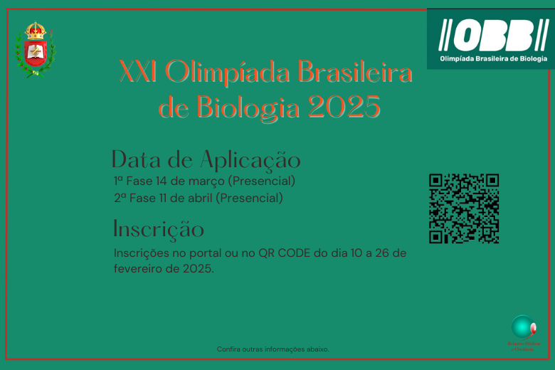 Home Diversos INSCRIÇÕES ABERTAS PARA XXI OLIMPÍADA BRASILEIRA DE BIOLOGIA 2025