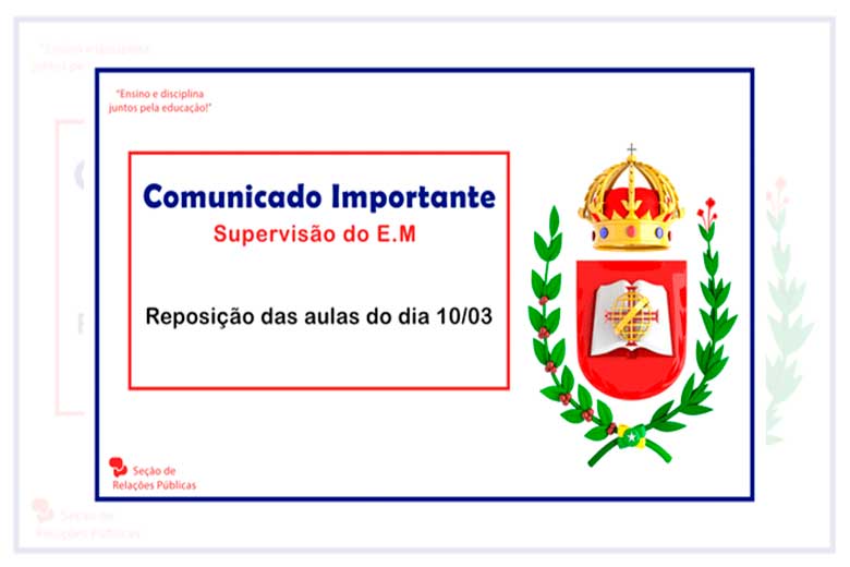 Em razão da queda de energia por instabilidade da Rede Elétrica da Concessionária, informo-vos que as aulas do dia 10/03/2021 serão repostas por meio de vídeo aulas, a serem disponibilizadas pelos respectivos professores.