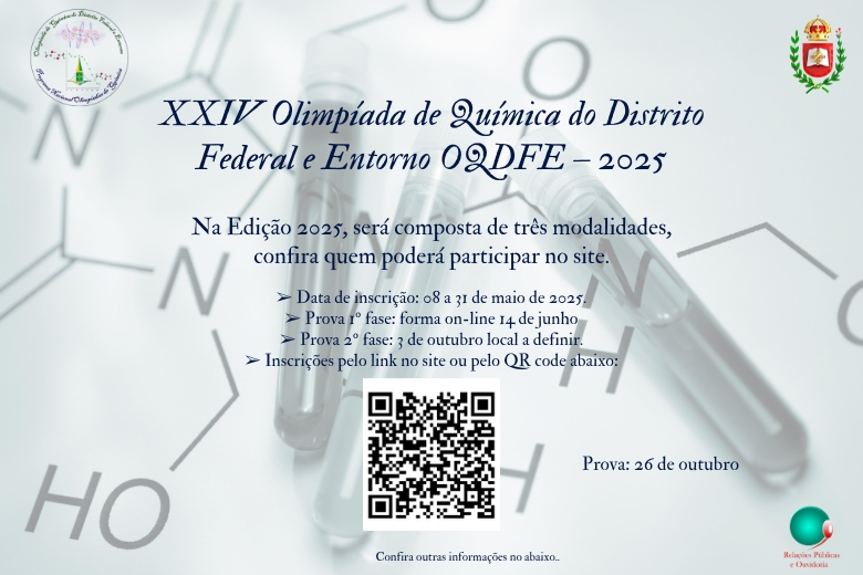 Home Diversos XXIV OLIMPÍADA DE QUÍMICA DO DISTRITO FEDERAL E ENTORNO OQDFE – 2025